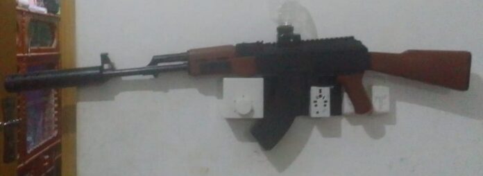 அம்பாறை மாவட்டம் பெரிய நீலாவணை பொலிஸ் பிரிவில் உள்ள புறநகர் பகுதி வீடு ஒன்றில் குசன் கதிரையில் மறைத்து வைக்கப்பட்டிருந்த ரீ-56 ரக துப்பாக்கி 2 மகசீன்கள் என்பன மீட்கப்பட்டிருந்தன.