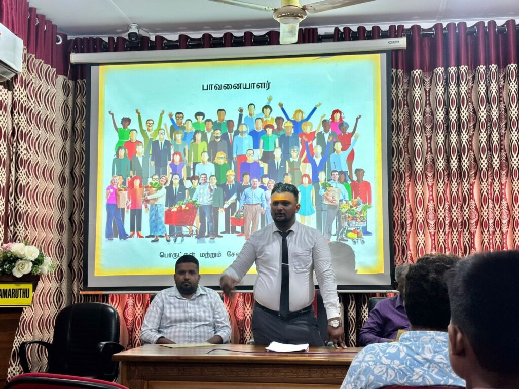 பொறுப்புகள்,சட்டங்கள்,பாதுகாப்பு மற்றும் பொருட்கள் சேவைகளின் போது கவனிக்க வேண்டிய முக்கியமான விடயங்கள் மற்றும் தற்போதைய சந்தையில் பொருட்களின் அரசாங்க கட்டுப்பாட்டு விலை மற்றும் அதிகார சபையின் சட்ட திட்டங்கள் சம்பந்தமான வியாபாரிகளுக்கு விளக்கக்காட்சி ஊடாக தெளிவுபடுத்தப்பட்டது.