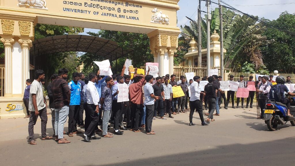 யாழ்ப்பாணப் பல்கலைக்கழக மாணவர் ஒன்றியத்தினால் ஏற்பாடு செய்யப்பட்ட இந்தப் போராட்டத்தில், பல்கலைக்கழக மாணவர்கள் பெருமளவில் கலந்துகொண்டு தமது கண்டனங்களை வெளியிட்டனர்.