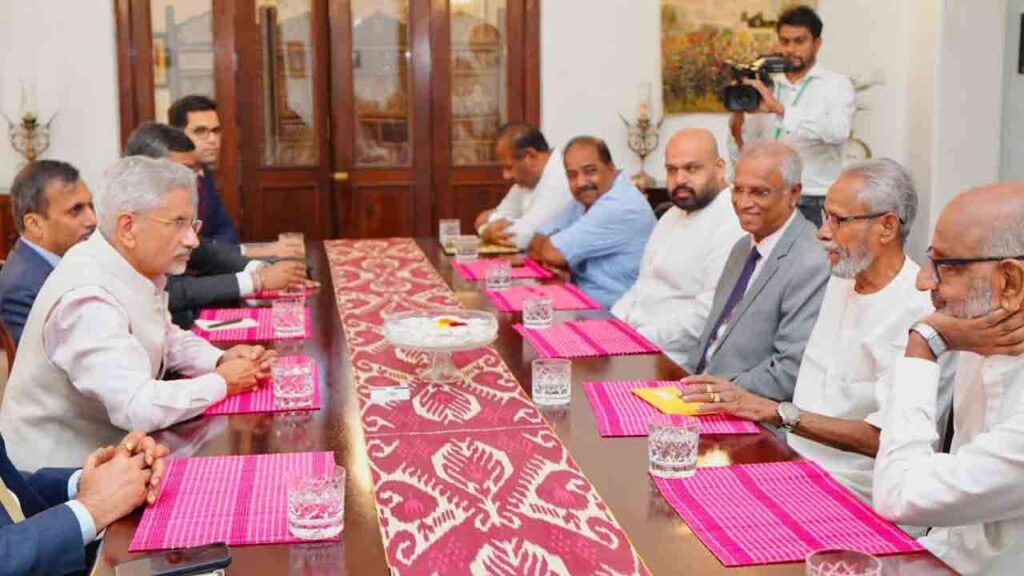 இலங்கைக்கு உத்தியோகபூர்வ விஜயம் மேற்கொண்டுள்ள இந்திய வெளிவிவகார அமைச்சர் கலாநிதி எஸ். ஜெய்சங்கர், இன்று (23) வடக்கு – கிழக்கு தமிழ் அரசியல் தலைவர்கள் மற்றும் மலையக அரசியல் தலைவர்களைச் சந்தித்துக் கலந்துரையாடினார்.