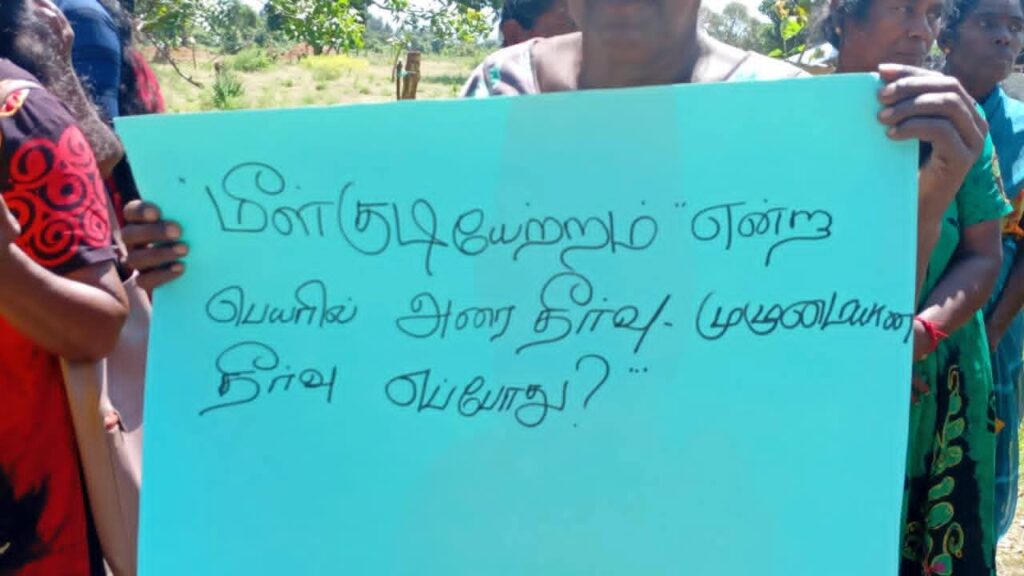 எனவே அரசாங்கம் விடுவித்த எமது காணியில் நாம் மீள்குடியேறுவதற்கான அனுமதி மறுக்கப்படுவது ஏன் என்ற கேள்வியுடன் அரசாங்கம் விடுவித்த எமது காணியை எமக்கு கையளிக்குமாறு கோரி இந்த போராட்டத்தை இன்று முன்னெடுத்தனர்