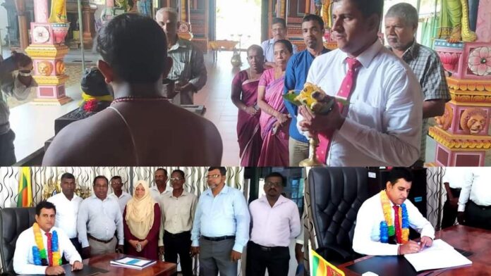 காரைதீவு பிரதேச செயலகத்தின் புதிய பிரதேச செயலாளராக பிரதேச செயலாளர் திரு ஜீ.அருணன் அவர்கள் காரைதீவு கண்ணகி அம்மன் ஆலயத்தில் இடம்பெற்ற விசேட பூசையில் கலந்து கொண்டு பிரதேச செயலகத்தில் தனது கடமைகளை கடந்த திங்கட் கிழமை (30) பொறுப்பேற்று கையொப்பமிட்டார்.