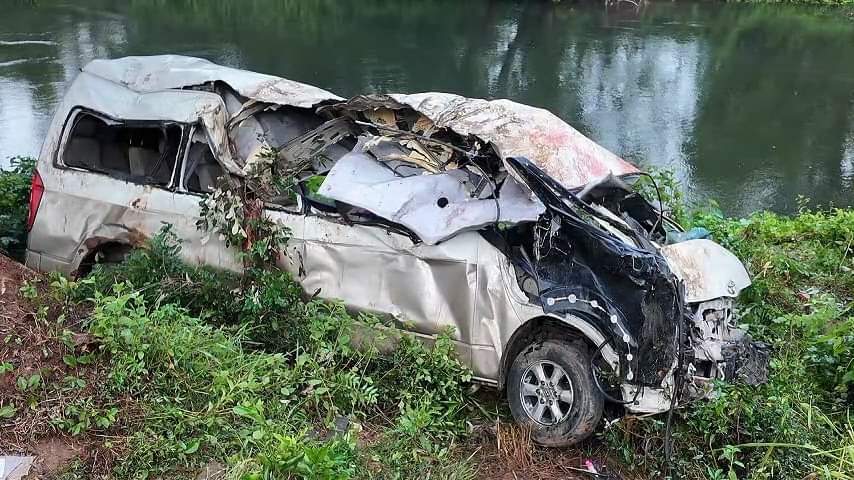 சுற்றுலாவிற்குச் சென்று வேனில் வீடு திரும்பும்போது வீதியில் சென்ற காட்டு யானை மீது வேன் மோதியுள்ளது.