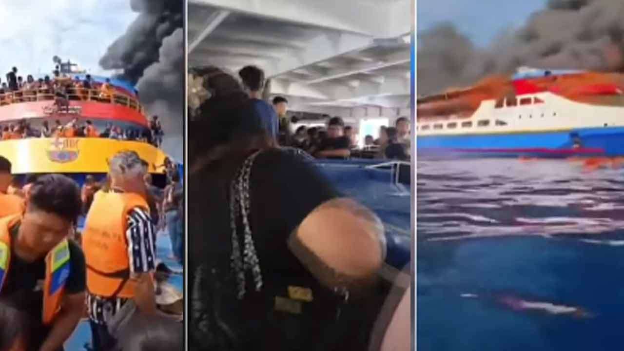 கப்பலில் தீ விபத்து ஏற்பட்ட போது, நூற்றுக்கும் மேற்பட்ட பயணித்த நிலையில் உயிரை காப்பாற்றிக்கொள்ள மக்கள் கடலில் குதித்தனர்.
