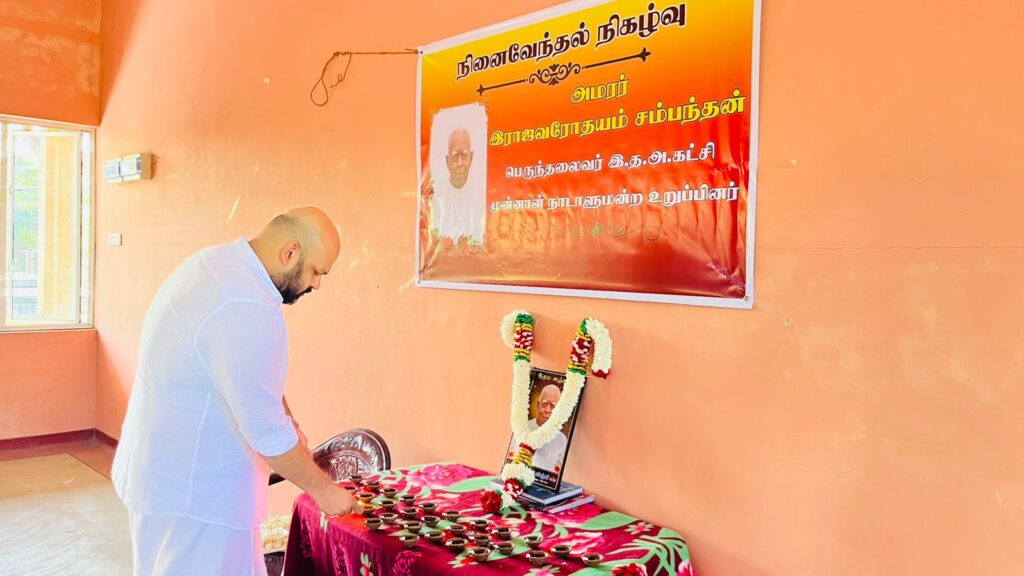இலங்கைத் தமிழ் அரசுக்கட்சி பெருந்தலைவருக்கு நினைவஞ்சலி நிகழ்வு இலங்கைத் தமிழ் அரசுக் கட்சி வவுணதீவு பிரதேசக் கிளையின் ஏற்பாட்டில் இன்று (27) பிரதேச சபைக்குரிய மண்டபத்தில் மறைந்த இரா.சம்பந்தன் அவர்களுக்கு ஓராண்டு அஞ்சலி நிகழ்வு இடம்பெற்றது.