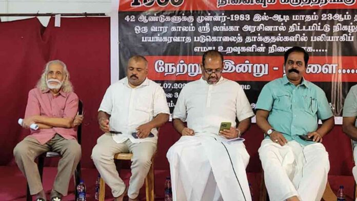 கறுப்பு ஜூலை நினைவுக் கருத்தரங்கு ” நேற்று – இன்று- நாளை” எனும் தொனிப்பொருளில் யாழ்ப்பாணம் வை.எம்.சீ.ஏ மண்டபத்தில் இன்று(27) இடம்பெற்றது.