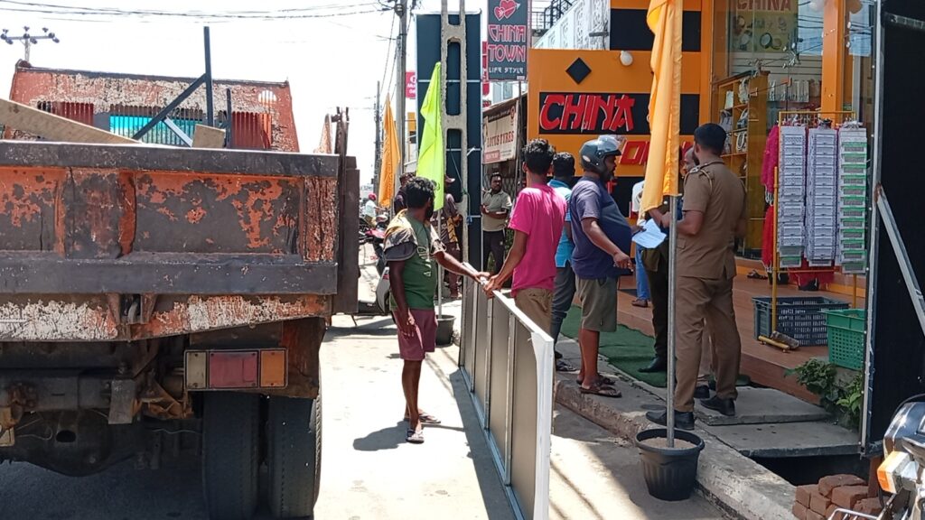 கல்முனை மாநகர சபைக்குட்பட்ட பல்வேறு வீதிகளில் உள்ள அனுமதியற்ற வியாபார கொட்டில்கள் பாதை இரு மருங்குகளில் அமைந்துள்ள தற்காலிக கடைகள் மற்றும் பாதுகாப்பு அற்ற முறையில் வீதியில் வைத்துள்ள விளம்பர விற்பனை பலகைகள் அகற்றப்பட்டு வருகின்றன.